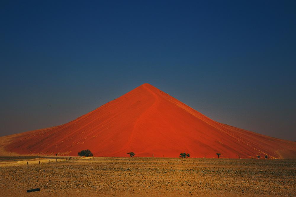 El recorrido comienza en Namibia, tierra de contrastes y paisajes extremos. Uno de sus tesoros más icónicos es Sossusvlei, donde se encuentra una de las dunas de arena roja más altas del mundo, alcanzando casi los 400 metros. El cielo azul claro contrasta con el rojo intenso de las dunas, creando una de las maravillas naturales más pintorescas de África y un paraíso para los amantes de la fotografía.