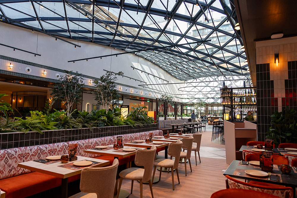 El Callejón de NUGA abre sus puertas al público para convertirse en el nuevo lugar de encuentro de los madrileños. Ya se puede disfrutar de este paseo peatonal con más de 4.600 m2, rodeado de vegetación y bajo la luz natural, en el que la innovación culinaria cobra especial protagonismo, ofreciendo una variada oferta de restauración que refleja el perfil de consumidor madrileño.