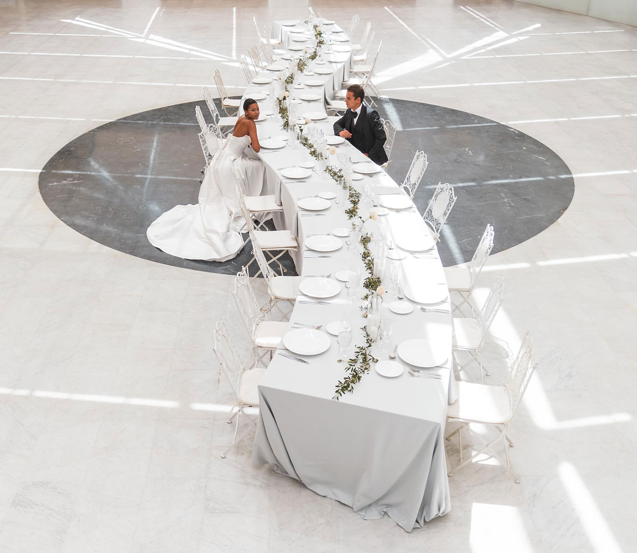 Otra tendencia que busca que la pareja y los invitados vivan la experiencia al máximo: una sola mesa para el banquete, larga y serpenteante. También conocidas como infinity tables, además de ser elegantes, permiten crear una estética diferente en el banquete de boda, adaptándose a cualquier tipo de espacio y de estilo. Cada invitado puede sentarse donde quiera, fomentando así la interacción entre ellos y permitiendo conocer a gente nueva.