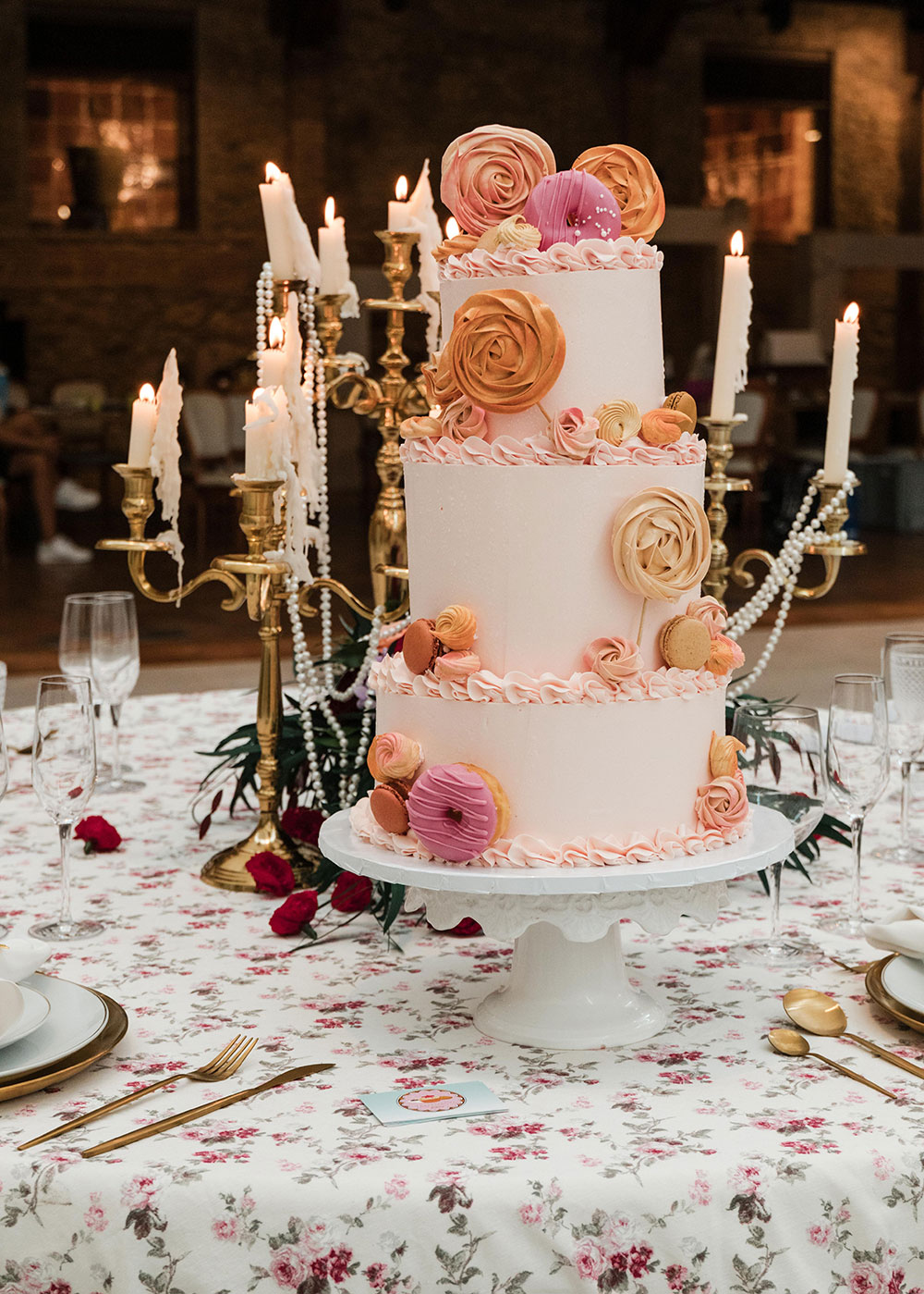 En contraposición, el rococó glam llega para compensar el estilo de las parejas que buscan encontrar en la opulencia el espíritu de su gran día. Se inspira en la Francia del siglo XVIII, pero con un toque contemporáneo. Salones con telas drapeadas, colores llamativos (dorados, burdeos, malvas…) mezclados con tonos empolvados, perlas y candelabros se convierten en el abc del estilo barroco que llega para no dejar a nadie indiferente. Sin olvidarnos de las perlas, que también serán protagonistas indiscutibles en las bodas de 2026, ya sea en los centros de mesa, arreglos florales, copas, candelabros o combinadas con las telas que darán forma al altar.