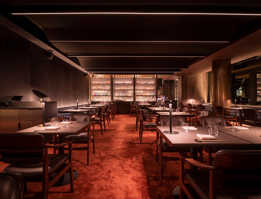 El antiguo Café Galdós madrileño es ahora este restaurante de casi 1.000 m2, distribuidos en dos plantas, con una cocina vista e incluso un salón privado con barra propia, perfecto para celebraciones exclusivas o reuniones corporativas. El diseño ha estado liderado por el arquitecto Andrés Stein, quien ha sabido conservar la esencia del inmueble catalogado como patrimonio histórico. Entre los elementos más personales del ambiente destaca una luminaria colgante en el comedor principal, con más de nueve metros de largo y compuesta por cientos de cristales de cuarzo.