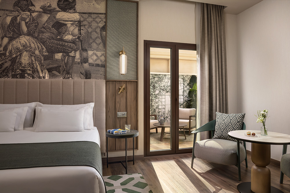 El hotel cuenta con 70 habitaciones, decoradas en cálidos tonos tierra, con vistas a Sierra Nevada o al Sacromonte. Su arquitectura de estilo clásico, junto con espacios renovados en 2025, respetan la esencia del edificio, logran el equilibrio perfecto entre historia, confort y autenticidad local.