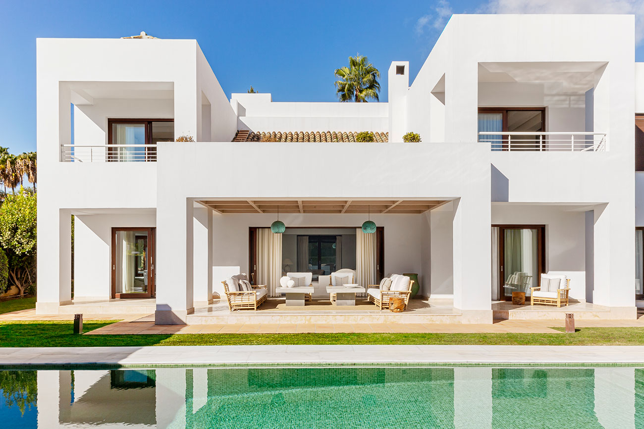 El estudio Fuertes Santamarta firma el proyecto de interiorismo y decoración de Altos Reales, una vivienda en Marbella que se abre al jardín y optimiza cada rincón de sus espacios interiores.