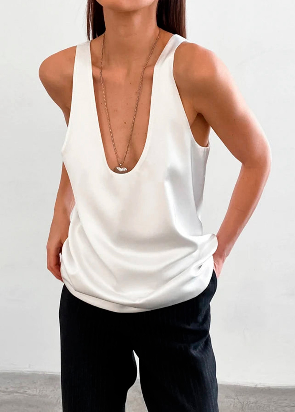 Ningún color resalta más el bronceado que el blanco en todas sus tonalidades, del más puro a sus versiones crema, hueso o nacarado. Este verano, la fiebre por el amarillo mantequilla ha hecho que algunos blancos como el alabastro o el marfil estén entre los deseados, pero también el blanco perla, el blanco roto de toda la vida o el blanco paloma.
