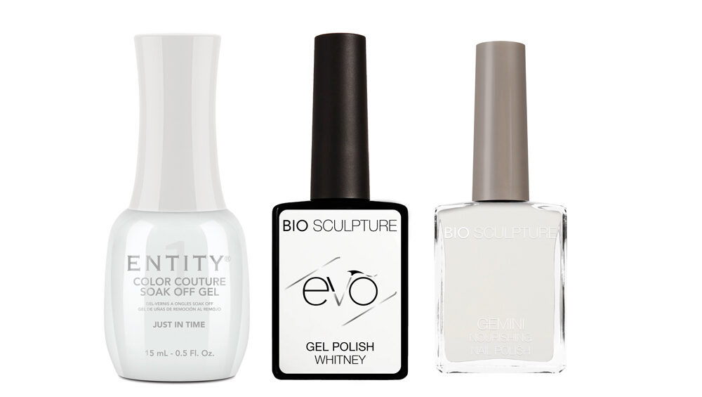 Esmaltes de color blanco de las firmas Entity y Bio Sculpture (EVO + Gemini).