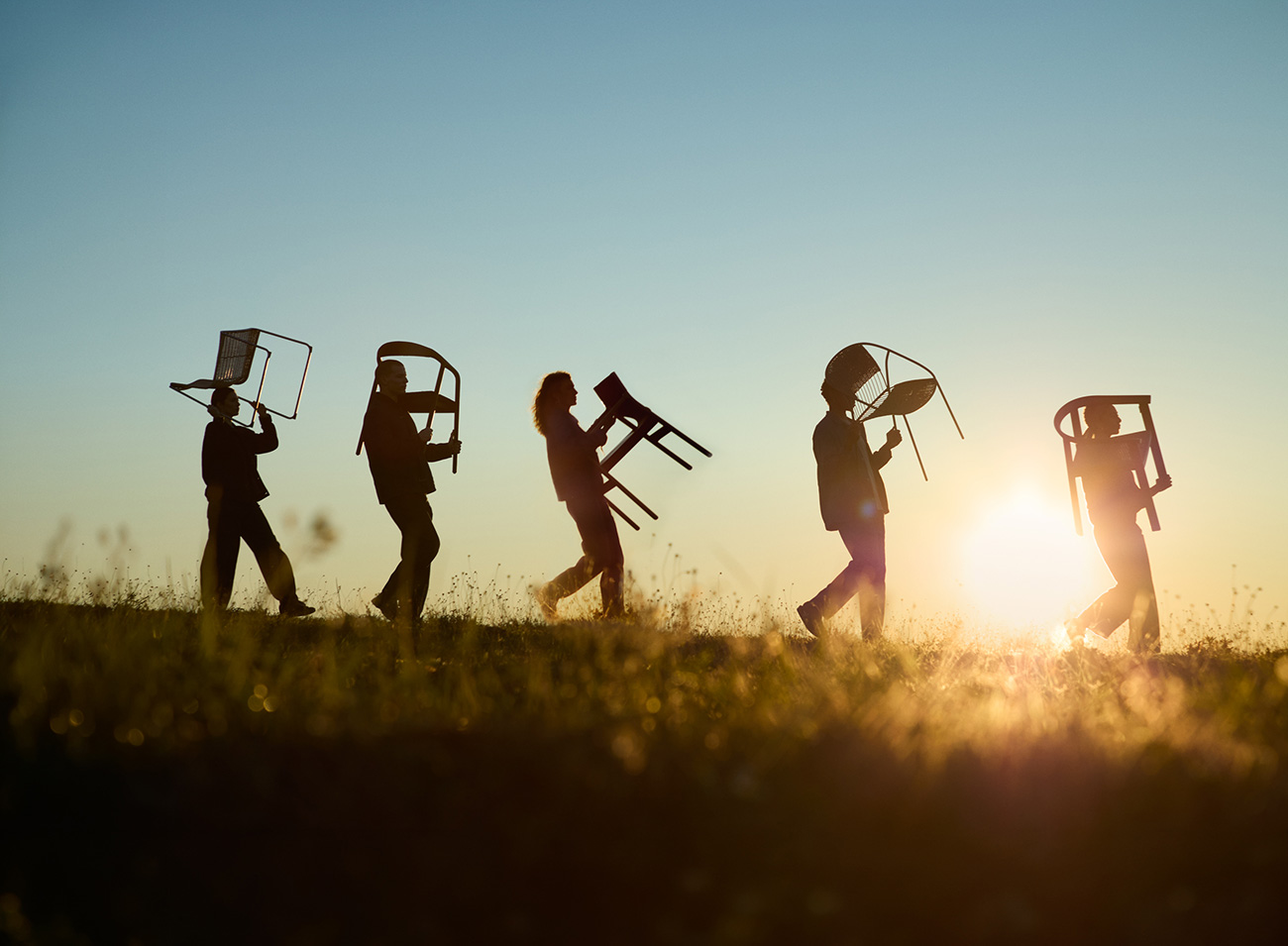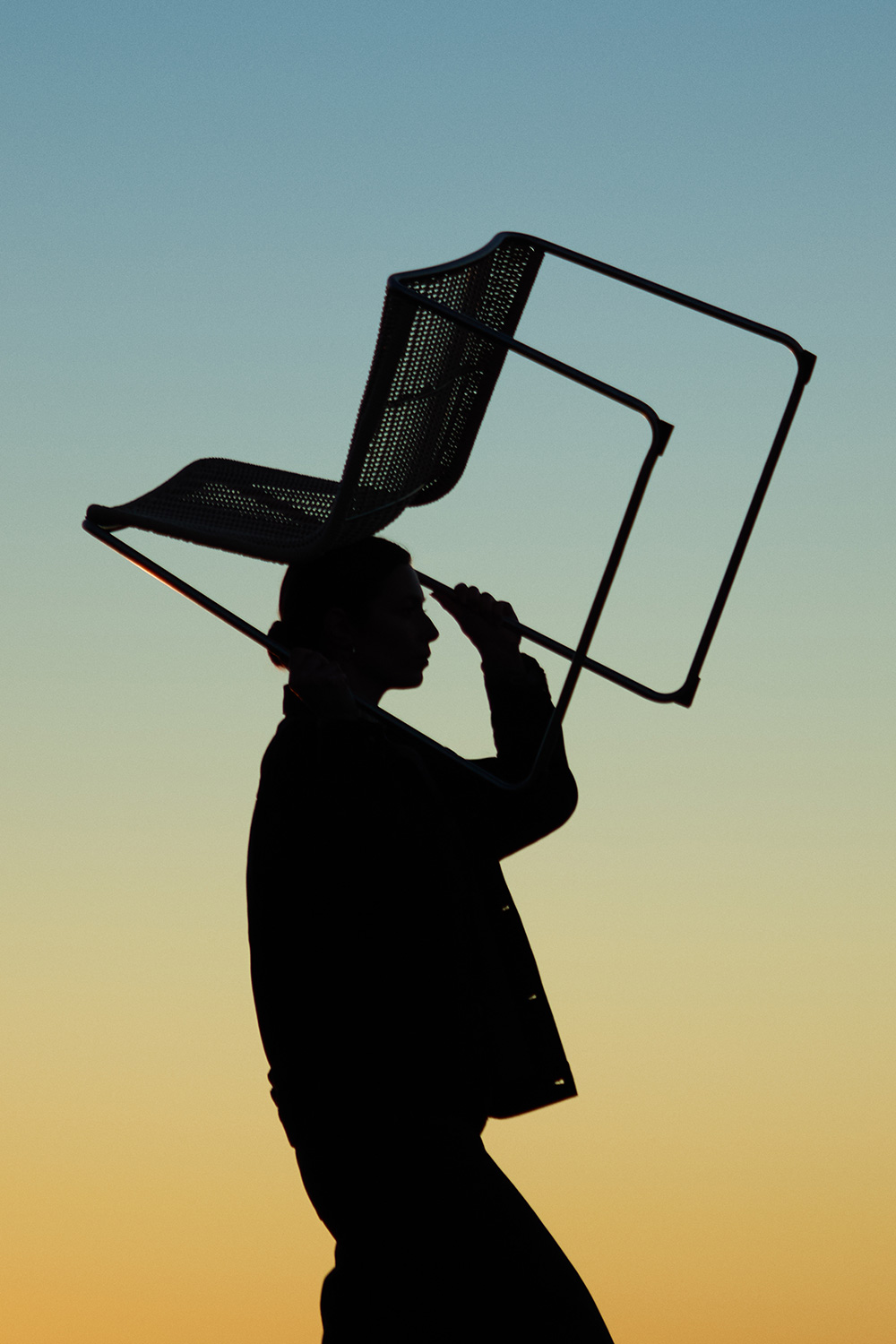 Uno de los símbolos que representa la colección es la tradición de “sacar la silla a la fresca”. Una escena cotidiana y reconocible: al atardecer, la gente del pueblo sale a la calle para conversar y disfrutar del aire libre. Un gesto sencillo que habla de comunidad, de tiempo compartido y de una vida vivida con las puertas abiertas.