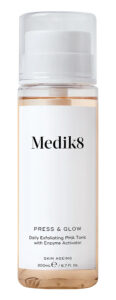 Press & Glow de Medik8 mejora la luminosidad de la piel y hace una exfoliación suave. Es un tónico de uso diario que trabaja con la gluconolactona, un polihidroxiácido perfecto hasta para pieles sensibles.