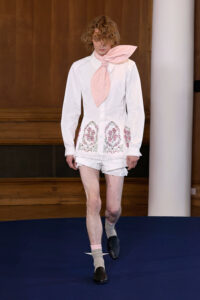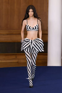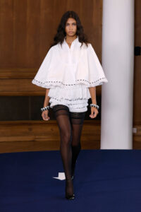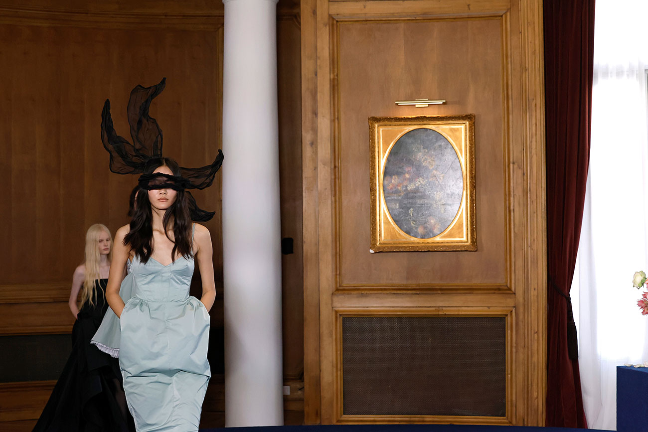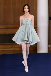 Con una paleta concisa y un delicado diálogo entre lo duro y lo suave, lo opaco y lo transparente, Alejandro profundiza en su sello característico dentro del knitwear y la piel, explorando siluetas inusuales y detalles meticulosamente elaborados. La colección refuerza también la estrecha relación colaborativa con Swarovski, que esta temporada se materializa en propuestas florales adornadas con cristales verdes, azules y rosas.
