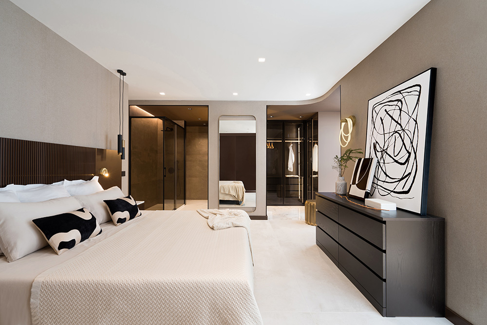 La inspiración para este proyecto surge de la fusión entre el diseño hotelero de lujo y la expresividad del arte, que adquiere un protagonismo especial a través de piezas cuidadosamente seleccionadas que generan un fuerte contraste visual. La integración de materiales nobles y texturas cálidas potencia la sensación de confort, mientras que la iluminación indirecta y los detalles decorativos crean un ambiente acogedor y elegante. Además, la continuidad visual entre los distintos espacios permite una fluidez funcional y estética, logrando un equilibrio perfecto entre modernidad y calidez.
